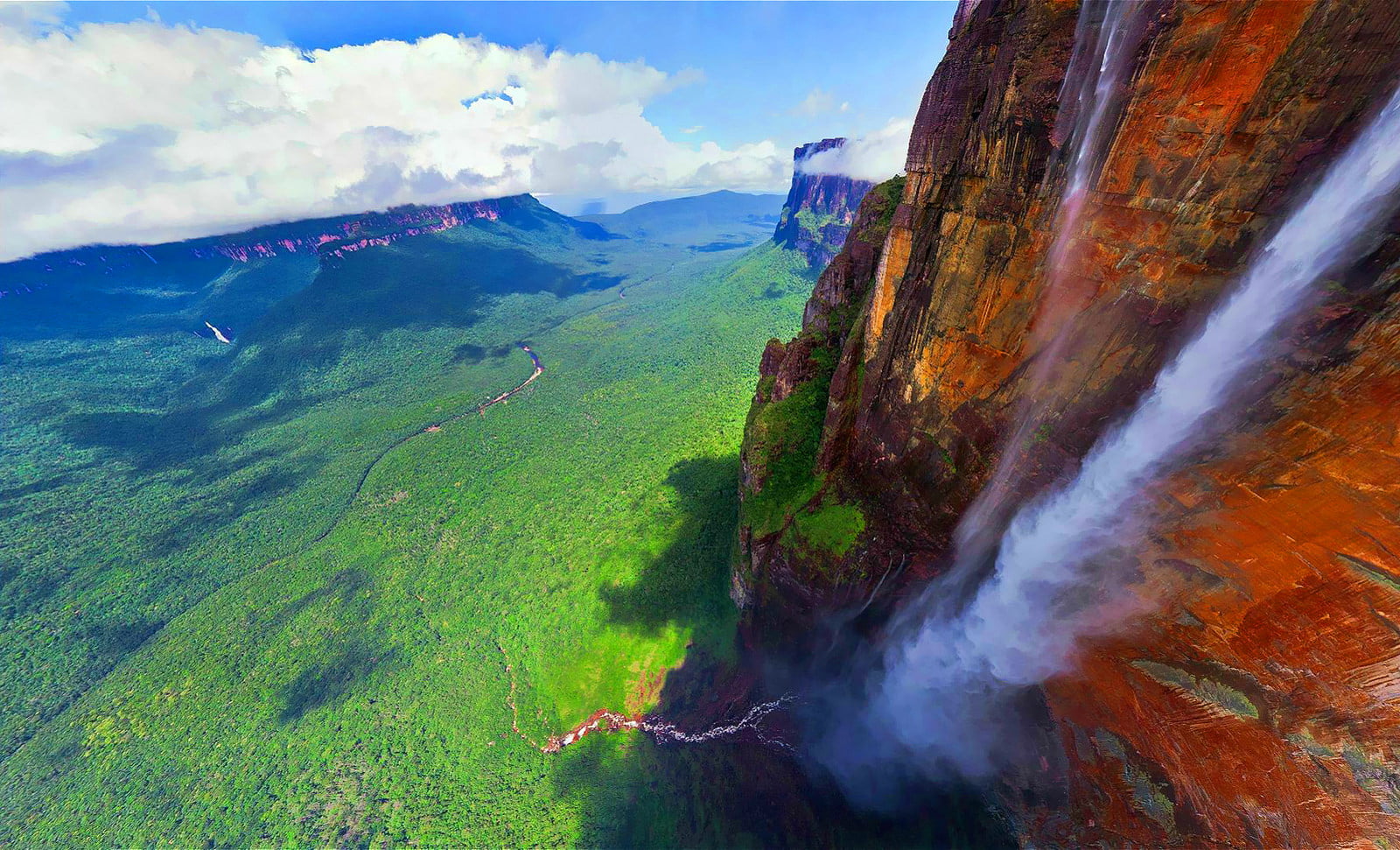 آبشار آنجل که در جنگل ونزوئلا واقع شده است، با 979 متر ارتفاع، بلندترین آبشار جهان است. در طول فصل تابستان، آب ها قبل از برخورد با زمین، تبخیر می شوند.