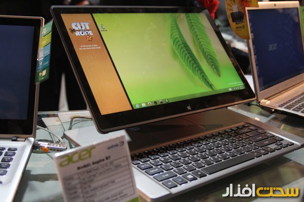 لپ تاپ ایسور با طراحی خاص که محل صفحه کلید و Touchpad در ان جابجا شده و صفحه نمایش نیز قابلیت حرکت دارد