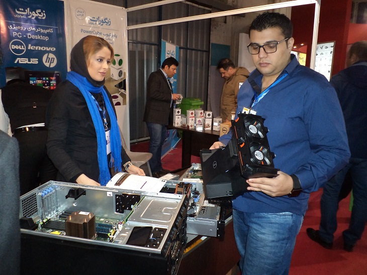 در حین گشت و گذار در یکی از بزرگترین سالن های سری 30 ناگهان با یک غرفه مزین با نام “زیگورات” بر خورد کردیم.این غرفه مقداری ساده اما به همراه کامپیوترهای بسیار جذاب است.یکی از مسئولین غرفه زیگورات در پاسخ به دلیل سادگی نمای کلی گفت:زیگورات در دقایق آخر تصمیم به شرکت در الکامپ 2015 را گرفته و فرصت برای اجرای بهتر از آنها گرفته شده است.هر چه که بود،مهم قطعات و سیستم های تحت حمایت زیگورات بود.این شرکت هم اکنون با برندهایی مانند HP،لنوو و دل در بازار فروش و خدمات حضور فعال دارد.در غرفه این کمپانی شاهد کامپیوترهای رک از برند دل بودیم.