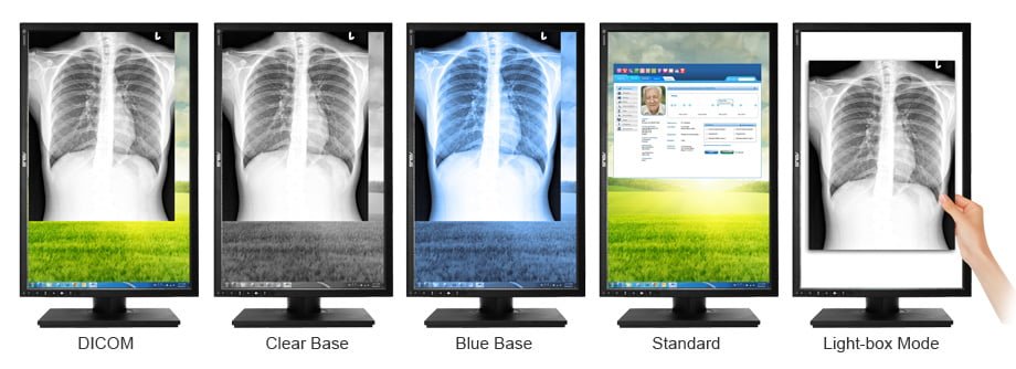 5 مد برای استفاده آسان در این نمایشگر، به کاربر اجازه می دهد تا خیلی راحت با توجه به نیاز خود، نحوه نمایش را در استاندارد مورد نظر انتخاب کند. همچنین برای مدل های DICOM سه حالت استاندارد، مد Blue-Base و مد شفاف (Clear-Base) نیز وجود دارد. علاوه بر آن مد کارامد Light Box هم در این نمایشگر برای نمایش فیلم های رایج پزشکی، درون سازی شده است. تمامی اینها با هم نمایشگری را به وجود می آورند که نیاز آن در هر کلینیک تخصصی حس می شود.
