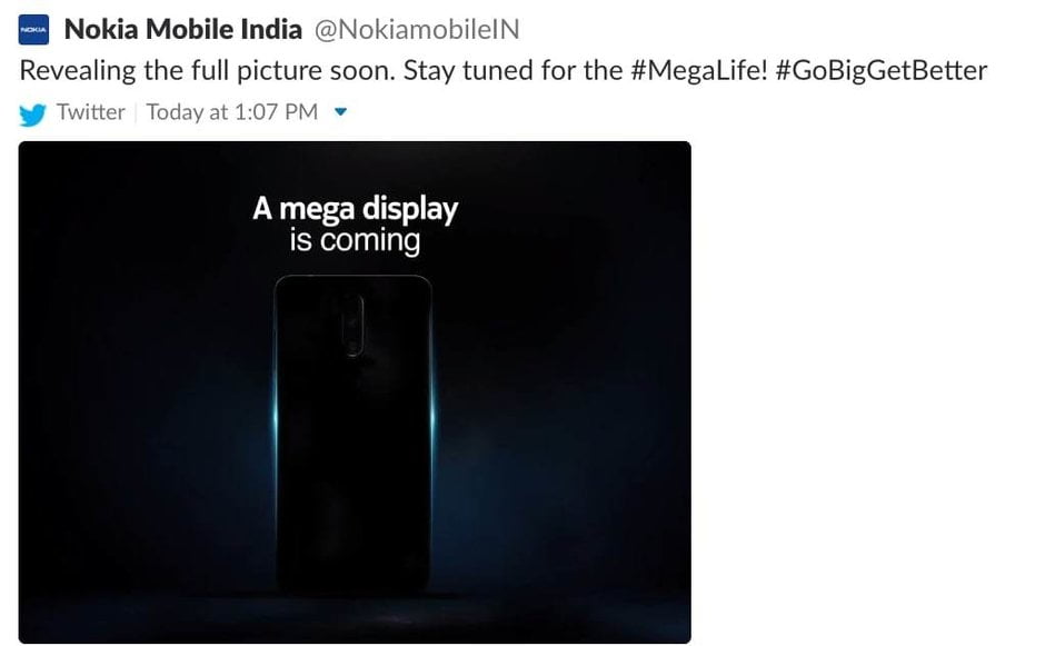 تیزری که امروز نوکیا موبایل هند در صفحه توئیتر خود منتشر کرد و بعد از آن به سرعت از صفحه توئیتر خود حذف کرد، به نظر میرسد که متعلق به گوشی نوکیا 7.1 پلاس باشد. این تصویر از جهات بسیاری شبیه به گوشی نوکیا 7 پلاس است، با این تفاوت که دارای صفحه نمایش “Mega Display” است. از آنجاییکه چند ماهی است که در رابطه با گوشی نوکیا 7.1 پلاس اطلاعات و اخبار منتشر شده است، دور از ذهن نیست که ماه آینده این گوشی به صورت رسمی معرفی شود. طبق شایعات نوکیا 7.1 پلاس احتمالاً دارای صفحه نمایش 6.18 خواهد بود، اما به طور دقیق مشخص نیست که منظور نوکیا از مگا دیسپلی چیست، تنها میتوان انتظار داشت که با کمترین حاشیه ممکن و بیشترین درصد نمایشگر به بدنه عرضه شود.