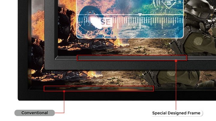 فریم پنل براق در نمایشگر های مخصوص بازی سبب بازتاب نور صفحه نمایش و در نتیجه خستگی زودرس چشم کاربران می شود. با توجه به دریافت بازخورد از گیمرهای e-Sports، طراحان کمپانی بنکیو از فریم مات در پنل نمایشگر های مخصوص بازی خود بهره می برند. با به کارگیری فریم مات در نمایشگر، تمام توجه گیمرها روی بازی متمرکز می شود.