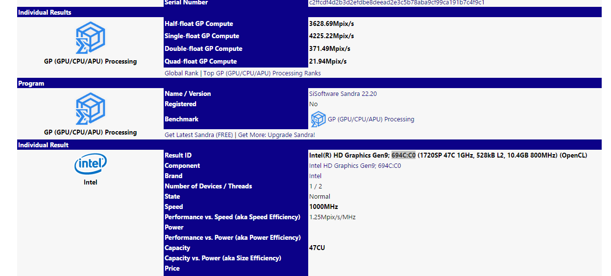 چند مجموعه سخت افزاری اطلاعاتی را منتشر کرده و مدعی هستند که این همکاری کاملا واقعی است؛ بنابر آخرین اطلاعاتی که ساعاتی پیش در اختیار ما قرار گرفت، پایگاه داده Sisoft Sandra نتایج بدست آمده از آزمون های نوعی تراشه ی MCM را ثبت کرده است. تراشه یا پردازنده های MCM به واقع چند مدار مجتمع (IC یا سیلیکون) بر روی یک برد هستند. این مدارها هر یک وظایفی خاص دارند اما ابعاد آنها مانند یک برد نبوده و بسیار کوچک هستند. طبق این اخبار، کمپانی Intel که سازنده انواع تراشه های MCM برای کاربردهای خاص است، یک خانواده ی جدید از پردازنده های MCM را تولید کرده است که در بخش CPU از معماری نسل هفتم، KabyLake، استفاده می کنند. اینتل و یا AMD هیچ یک به طور مستقل این همکاری را تائید نکرده اند؛ با وجود اطلاعات Sisoft Sandra درصدد ثابت کردن این مسئله است. در این پردازنده گرافیکی مجتمع از نسل نهم معماری گرافیکی AMD استفاده شده است؛ این پردازنده گرافیکی دارای 1720 واحد SP است و این در حالی است که اینتل از بلوک های SP استفاده نکرده و EU را برای این منظور به خدمت می گیرد. همچنین فرکانس هسته (GPU) در آن 1 گیگاهرتز است. با محاسبه فرمول Core Count * 2 * Clock Speed به این نتیجه می رسیم که توان عملیاتی این پردازنده گرافیکی به 3.4 ترافلاپ می رسد.