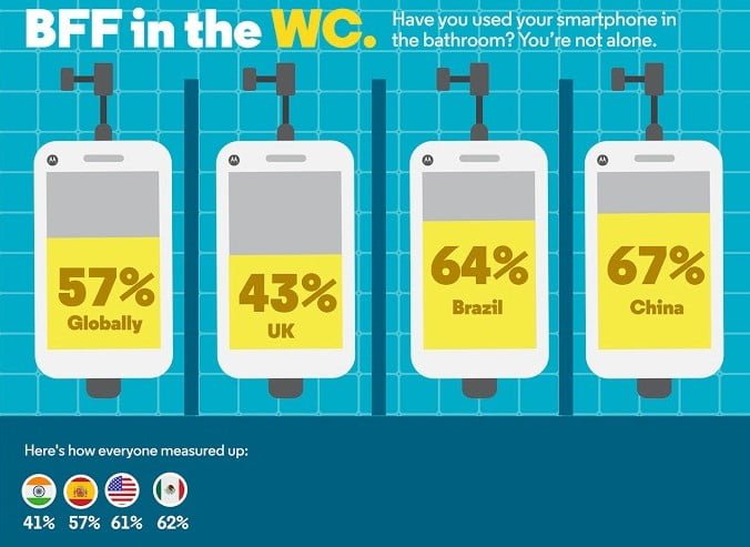 تصاویر ادامه مطلب به خوبی روایت گر داستان هستند. با این حال ما هم کمی به توضیح آمار می پردازیم. بر پایه بررسی موتورولا، 60 درصد کاربران در سراسر جهان شب را گوشی به دست می خوابند؛ پیش از خواب هم معلوم است به چه کاری مشغول بوده اند. 57 درصد کاربران حتما در سرویس بهداشتی گوشی را به کار می گیرند (البته سرویس آنها کمی متفاوت از ماست!) و 17 درصد نمی توانند حتی در حمام هم به خود آرامش هدیه داده و فقط دوش بگیرند. در سانحه آتش سوزی گوشی موبایل یکی از نخستین آیتم هایی است که 54 درصد افراد به نجاتش می شتابند؛ در حالی که تنها 39 درصد از گوشی خود رضایت دارند. بررسی های اینچنینی از جایی که پوشش بسیار گسترده ای ندارند، صرفا یک دید خوب برای یادآوری وقوع اتفاقی نامطلوب می دهند که ناشی از استفاده نادرست و عدم توسعه فرهنگ صحیح کاربری است. امیدواریم نگرشی عمومی شکل بگیرد تا شاهد کاهش اعداد آمارهایی از این دست باشیم.