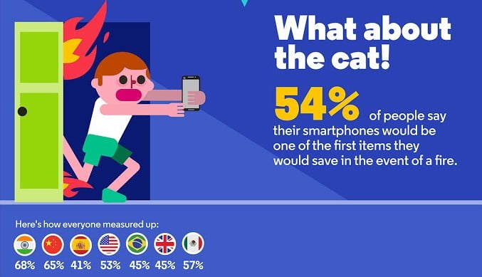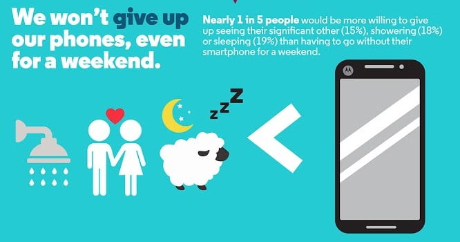 فرقی نمی کند در خیابان باشیم، داخل وسایل نقلیه عمومی و شخصی به سوی مقصد برویم، در منزل به انجام امور شخصی مشغول باشیم و یا هر شرایط دیگری؛ گوشی هوشمندمان ما را رها نمی کند! در همین ایران تنها سه سال پیش آنقدری افراد گوشی به دست با چشمانی دوخته به صفحه نمایش نمی دیدید که باعث تعجب شود. امروزه مرزهای حیرت چند وقتی است درنوردیده شده اند و ساعت ها وقت گذرانی با گوشی به شکل افسار گسیخته ای مرسوم شده است. شرکت موتورولا به تازگی روی 7112 فرد بالغ از هفت کشور مختلف تحقیقی را انجام داده تا به طور نسبی برای دلبستگی و وابستگی افراد به گوشی خود یک دید آماری را فراهم کند. این آمار از دلبستگی منتهی به گذر از خوشی آخر هفته گرفته تا وابستگی به هنگام آتش سوزی را شامل می شود.