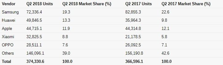 در طرف مقابل آمار اپل در مقایسه با سال قبل به سختی دستخوش تغییر شده است. میزان تفاوت فروش با سال قبل کمتر از 1 درصد بوده است و این نشان میدهد جذابیت آیفون X اپل زودتر پرچمداران بالارده قبلی این کمپانی فروکش شده است. گوشی های آیفون 8 که به عنوان یک ارتقاء مناسب برای مدل های قدیمی تر به حساب می آیند، میزان فروششان رشد آرامی داشته است.