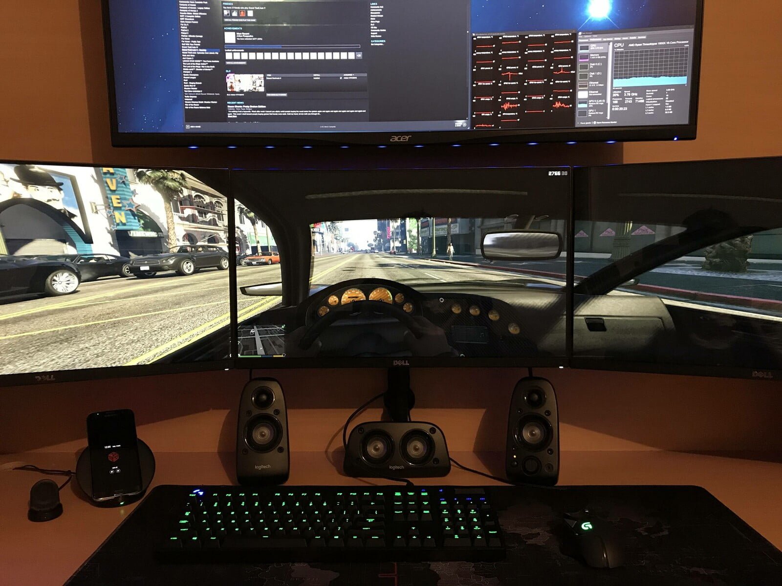 تغذیه این کامپیوتر قدرتمند بر عهده پاور EVGA SuperNova 1600 W قرار گرفته و در حوزه گرافیک نیز 4 عدد کارت گرافیک XFX Radeon Vega 64 L را در کیس مورد نظر نصب کرده است. این کارت گرافیک ها با خنک کننده های مایع تهویه می شوند. در نهایت به بخش نمایشگرها می رسیم که شامل 3 عدد مانیتور 24 اینچی دل و یک مانیتور 38 اینچی گیمینگ ایسر می شوند!