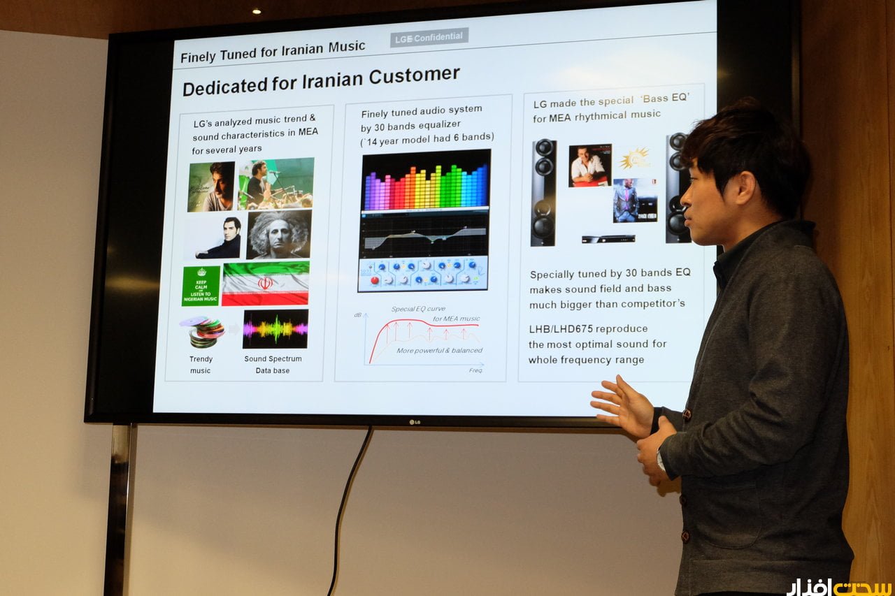 آنچه در کارگاه تست و بررسی Sound Tower ارائه شد، نمونه ای آزمایشی و دست ساز از این سیستم صوتی بود که البته هنوز نهایی نشده است. در واقع هدف از برگزاری این برنامه، به اشتراک گذاری دیدگاه ها و نظرات مختلف درباره کیفیت صدا و طراحی این محصول برای بهبود محصول نهایی و ارائه یک سیستم صوتی اختصاصی برای کاربران ایرانی است. از حدود یک سال و نیم پیش، بیش از صد موسیقی ایرانی که بیشترین طرفدار را در میان ایرانیان داشته در اختیار ال جی قرار گرفته تا با بررسی و ارزیابی آن ها بتوانند یک پروفایل اختصاصی از تنظیمات اکولایزر برای موسیقی ایرانی تهیه شده و تجربه بهتری از گوش دادن به موسیقی را فراهم نماید.
