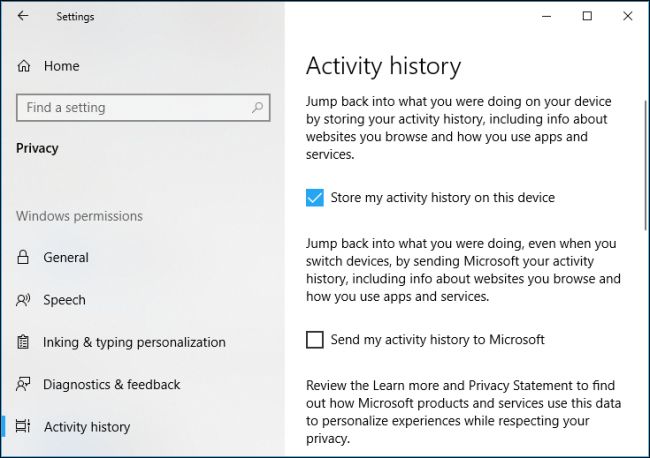 ویندوز 10 دارای قابلیتی است به نام Activity history که تاریخچه ای از فعالیت های شما را جمع آوری می کند و این تاریخچه را برای مایکروسافت ارسال خواهد کرد. نکته اینجاست که حتی اگر این قابلیت را غیر فعال کنید باز هم بخشی از حریم شخصی و فعالیت های شما برای مایکروسافت ارسال می شود و نمی توانید جلوی این اتفاق را بگیرید.