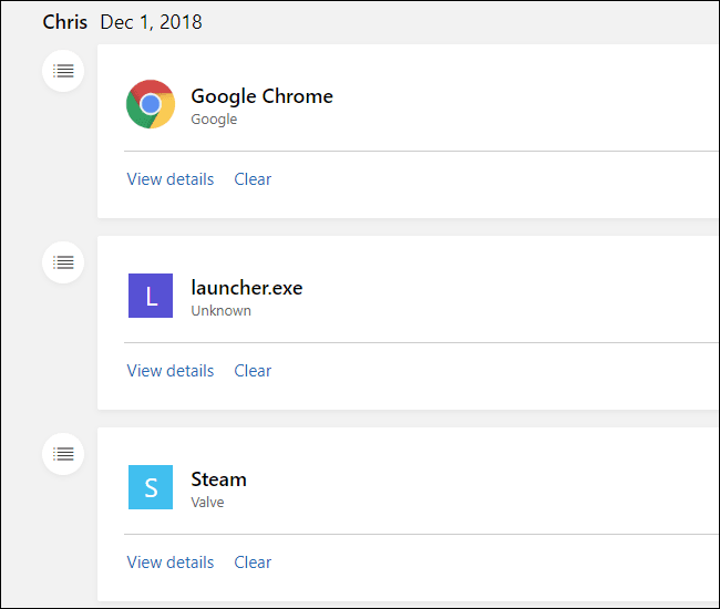خواهید دید که لیستی از برنامه ها و فعالیت های اخیرتان در این صفحه به نمایش در آمده و حتی اگر این قابلیت در سیستمتان غیر فعال باشد باز هم شاهد این اطلاعات در سرور مایکروسافت خواهید بود.