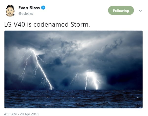 به گفته ایوان بلس، افشاگر معروف توئیتری LG V40 با اسم رمز Storm (طوفان) در حال ساخت است. از آنجاییکه V30S ThinQ از بسیاری از جهات شبیه به V30 استاندارد بود و تنها با قابلیت های هوش مصنوعی و حافظه بیشتر در مقایسه با گوشی قبلی عرضه شده بود؛ نمی توانست لقب جانشین را به خود بگیرد. اما حالا به نظر میرسد که LG V40 می تواند یک جانشین واقعی برای V30 باشد که سال گذشته به بازار عرضه شد. متاسفانه در حال حاضر به غیر از نام و اسم رمز ما اطلاعات دیگری از LG V40 نداریم.
