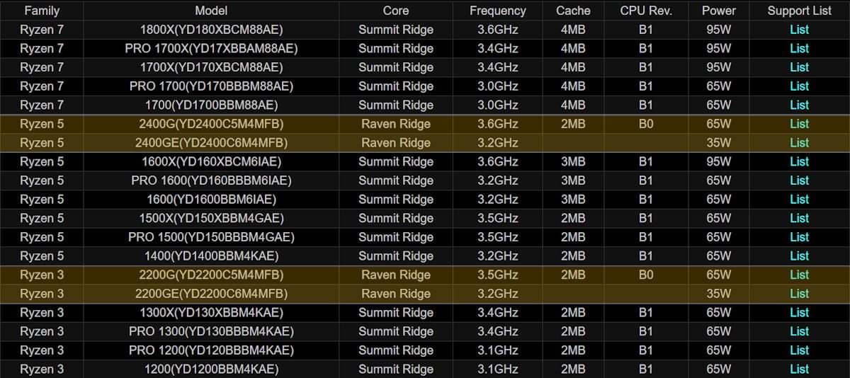 شرکت AMD به تازگی APU های پر سر و صدای Ryzen 5 2400G و Ryzen 3 2200G را با کد رمز Raven Ridge معرفی کرده است؛ تولید کنندگان مادربرد نیز دست به کار شده و آپدیت های سطح BIOS را به منظور پشتیبانی از آنها منتشر کرده اند. در همین حال کمپانی نام آشنای ASRock لیستی از پردازنده های جدید و قابل پشتیبانی در این سوکت را منتشر کرده است که اتفاقا دو نام جدید و عجیب در میان آنها، خبر ساز شده است.