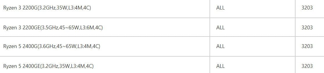 دو پردازنده Ryzen 5 2400GE و Ryzen 3 2200GE مدل های کم توان از APU های Raven Ridge هستند که با توان حرارتی 35 وات در لیست آورده شده اند. این پردازنده ها دارای پسوند GE بوده و در نتیجه به طور حتم آنها نیز از سری مدل های APU خواهند بود. احراز هویت این دو APU زمانی تائید می گردد که کمپانی ASUS نیز لیستی مشابه را با دو نام Ryzen 5 2400GE و Ryzen 3 2200GE منتشر کرده است.