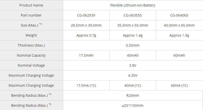 کمپانی ژاپنی پاناسونیک در زمینه های مختلف الکترونیک فعالیت میکند و یکی از بخش هایی که پاناسونیک به آن مشهور است، بخش تولید باتری این کمپانی برای گوشی های هوشمند است. حال پاناسونیک نسل جدیدی از باتری های لیتیون یون خود را معرفی کرده است که قابلیت خمش دارند و برای استفاده های در گجت های پوشیدنی و دیگر لوازم الکترونیکی مشابه کاربرد دارند. ضخامت این باتری ها تنها 0.55 میلی متر است که نشان از باریکی بسیار زیاد آنها دارند.