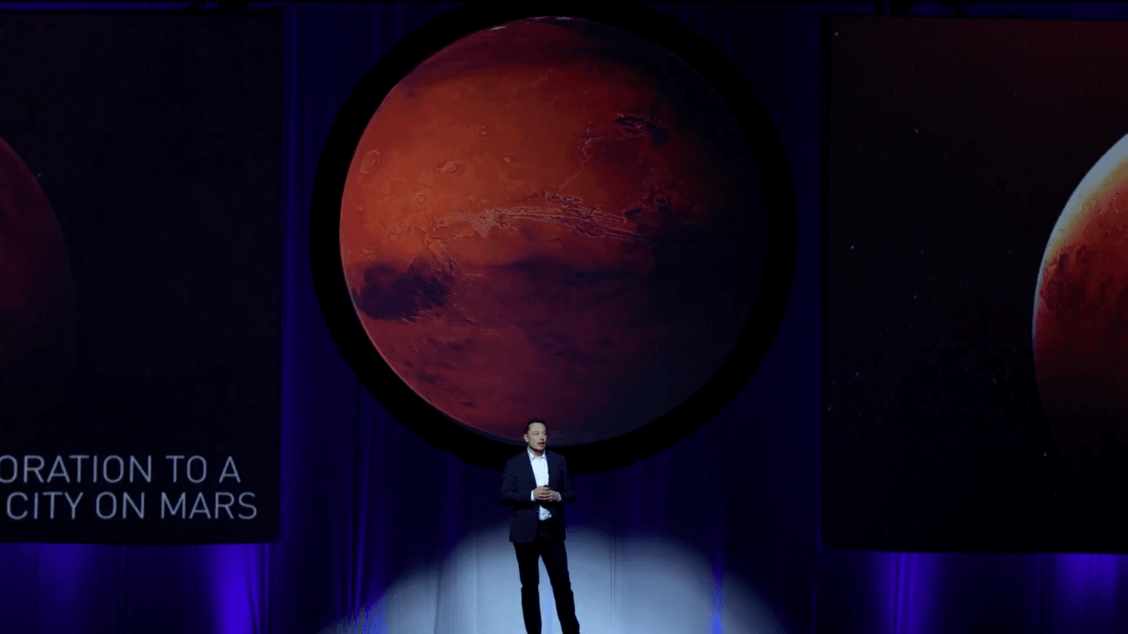 ایلان ماسک در این کنفرانس تقریبا تمامی انتظارات خود از آینده را در یک جمله ساده خلاصه کرد. به عقیده او زندگی انسان باید فراتر از کره زمین رفته و در سیارات دیگر نیز ادامه پیدا کند. البته او بر خلاف سایر شرکت های بزرگ فضایی دنیا از برنامه های بلند مدت صحبت نکرد و آغاز تسخیر مریخ به عنوان اولین پایگاه بشر را سال 2022 یعنی تنها 6 سال دیگر عنوان کرد. ایلان ماسک در بخشی از سخنان خود عنوان کرد “در حال حاضر دو راهکار پیش روی بشر باقی مانده است. اول آنکه روی زمین به زندگی ادامه دهیم و منتظر یک انقراض بزرگ دیگر باشیم و راه دوم اینکه انسان را به گونه ای بین سیاره ای تبدیل کنیم و زندگی را در کرات دیگر در پیش بگیریم”.