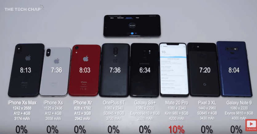 - برتری HUAWEI Mate 20 Pro در مقایسه عملکرد باتری با OnePlus 6T، Note 9، Pixel 3 XL، iPhone XS / XR و محصولات دیگر