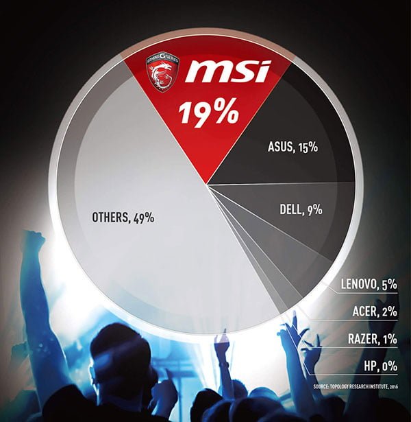 پس از آن،MSI الترا بوک های گیمینگ مانند مدل های Ghost را معرفی کرد.محصولاتی سبک اما قدرتمند و گیمینگ.MSI وارد فاز جدیدی شده بود.از اشتانیتون های متنوع گرفته تا تعدد مدل های گیمینگ که به واقع هر کاربری با هر بودجه را دست خالی نمی گذاشت.نتیجه آن شد که این برند تایوانی هم اکنون رتبه اول فروش لپ تاپ های گیمینگ جهان را در دست دارد.MSI از فروش 19 الی 20 درصدی در بازارهای جهانی خبر می دهد.به عبارت ساده تر،19 الی 20 درصد از تمامی لپ تاپ های گیمیگ فروخته شده در سال 2016،مربوط به برند MSI بوده است.این در حالی است که ایسوس،به رتبه دوم سقوط کرده و 15 درصد از بازار لپ تاپ های گیمینگ را در دست دارد.برند Dell که یک شاخه گیمینگ به نام ALIENWARE را در زیر مجموعه خود دارد نیز در رتبه سوم جهان،9 درصد از فروش لپ تاپ های گیمینگ جهان را به خود اختصاص داده است.جالب است بدانید که لپ تاپ های پرداتور ACER که زمان زیادی از عرضه آنها به بازار نمی گذرد،موفق به کسب 2 درصد از تمام فروش لپ تاپ های گیمینگ جهان شده اند.کمپانی RAZER نیز 1 درصد از این بازار را از آن خود کرده است.بدین ترتیب MSI تاج پادشاهی لپ تاپ های گیمینگ جهان را بر سر نهاده و به عنوان پر فروش ترین برند در لپ تاپ های گیمیگ،2016،شناخته می شود.