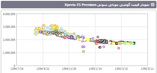 اکسپریا Z5 نیز از کمپانی سونی دارای شرایطی مشابه است. مدل پرمیوم این خانواده در آبان ماه 94 با قیمت حدودی 2.900.000 تومان وارد بازار ایران شد و دو ماه بعد در دی ماه همین سال قیمت آن به 2.200.000 تومان رسید. این گوشی در حال حاضر پس از 7 ماه از زمان عرضه خود قیمتی در حدود 1.700.000 تومان دارد.