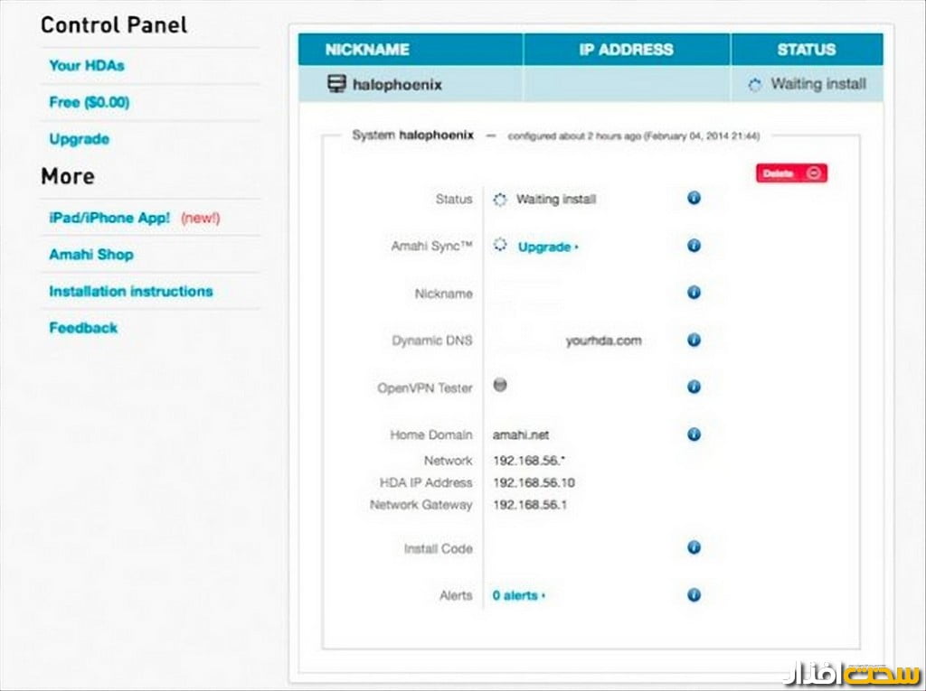 حداقل سختافزاری که برای استفاده از Amahi معرفیشده است شامل پردازنده با فرکانس کاری یک گیگاهرتز، 512 مگابایت حافظه رم، چهار گیگابایت فضای ذخیرهسازی و استفاده از اتصال کابل LAN برای اتصال به شبکه است (متاسفانه این نرمافزار از اتصال بیسیم پشتیبانی نمیکند). هرچه قطعات سختافزاری سیستم شما بهتر باشد، طبعا کارآیی بهتر را در استفاده از این نرمافزار در شبکه، بهدست خواهید آورد. قبل از هر چیز برای اینکه بتوانید از سرور خانگی Amahi استفاده کنید لازم است که به Install Code دسترسی پیدا کنید. با استفاده از این Install Code میتوانید سرور را پیکربندی کرده و یک لینک بین آن و سایت اصلی Amahi برقرار کنید. به همین منظور باید به سایت amahi.org مراجعه کرده و یک حساب کاربری در آن ایجاد کنید. با ثبتنام در این سایت یک Install Code به آدرس ایمیل که در زمان ثبتنام وارد کرده بودید، ارسال میشود. در زمان عضو شدن در سایت مورد نظر، از شما آدرس IP و آدرس Gateway مربوط به روتر خواسته میشود که مقدار پیشفرض آن 192.168.1.1 است که البته برحسب سازنده روتر مورد استفاده شما، ممکن است آدرسی متفاوت (مثلاً 172.16.1.1) داشته باشد. برای آدرس IP بهتر است از قبل در روتر یک آدرس IP اختصاصی به سرور مورد نظر اختصاص دهید و همان آدرس را نیز در سایت Amahi وارد کنید. بهاین ترتیب در آینده DHCP Server روتر نیز تغییری در این آدرس و بروز مشکلات دیگر ایجاد نخواهد کرد.در زمان نصب باید از Install Code که به آدرس ایمیل شما ارسال شده است استفاده کنید (امکان تغییر Install Code وجود ندارد). درصورتی که پس از طی این مراحل با مشکل روبهرو شدید، باید آدرس IP را که در سایت وارد کردهاید تغییر دهید یا نرمافزار Amahi را پاککرده و دوباره نصب کنید. در زمان نصب، در صورت انتخاب گزینه Amahi Express، ابتدا کل دیسک پاک یا به اصلاح Wipe شده سپس این نرمافزار نصب میشود. درصورتیکه اطلاعاتتان مهم باشد و قصد نداشته باشید کل دیسک را پاککنید دو راه وجود دارد. روش اول تهیه نسخه پشتیبان از کل دیسک و سپس بازگرداندن اطلاعات پس از نصب نرمافزار Amahi است. روش دیگر انتخاب گزینه Install Advance و نصب نرمافزار بدون پاک شدن محتویات هارددیسک است. درصورتیکه از چندین هارددیسک روی سرور استفاده میشود، میتوانید دیسکهای دیگر را جدا کرده و زمانی که Amahi روی یک دیسک نصب شد، دیسکهای دیگر را متصل کنید.