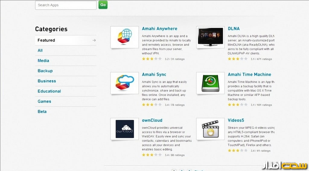 یکی از مزایای استفاده از سرور خانگی Amahi این است که شما میتوانید یک Media Server در آن درست کنید. به این معنی که شما میتوانید با استفاده از امکاناتی که این برنامه فراهم کرده است، اطلاعات خود را علاوه بر شبکه داخلی، در شبکه اینترنت نیز به اشتراک بگذارید. برنامههای مختلفی در سایت Amahi جهت به اشتراک گذاشتن اطلاعات سرور، در اینترنت وجود دارد. تعدادی از این برنامهها بهصورت رایگان بوده و برخی دیگر باید خریداری شوند. بهعنوان مثال با استفاده از برنامه gallery2 که یک برنامه رایگان است، میتوانید عکسهایی که در شبکه داخلی خود به اشتراک گذاشتهاید، در شبکه اینترنت هم به اشتراک بگذارید تا در هر نقطهای که هستید با استفاده از اینترنت بتوانید به این اطلاعات دسترسی پیدا کنید. با استفاده از برنامه amahi DLNA server که قیمت 5 دلار برای آن تعیینشده است، میتوانید اطلاعات تصویری یا صوتی خود را از طریق اینترنت روی دستگاههایی که دارای قابلیت اتصال به اینترنت هستند از جمله تبلتها، گوشیهای هوشمند، لپتاپها، کنسولهای بازی و تلویزیونهای هوشمند، به اشتراک بگذارید (تصویر 6).