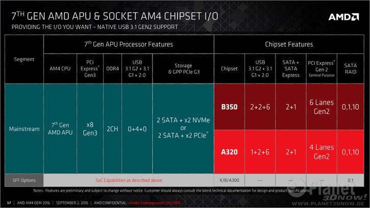 در نهایت چیپست های A Series و مدل های A320 را خواهیم داشت.این چیپست در مادربرد و به طور کلی پلتفرم های ارزان قیمت ظاهر خواهد شد.این چیپست در آرایش 6+2+1 از رابط نسل دوم USB 3.1،رابط USB 3.1 نسل اول و در نهایت آخرین عدد نیز به تعداد پورت های قابل پشتیبانی در مدل USB 2.0 اختصاص دارد.A320 قادر به آدرس دهی 4 مسیر PCI 2.0 است که البته در این زمینه انتظار پشتیبانی از نسل سوم PCI را داشتیم.در نهایت همانطور که اشاره شد،سری A300 ارزان قیمت ترین پلتفرم AM4 را تشکیل خواهند داد.