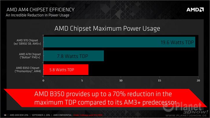 علاوه بر آن X370 برای اورکلاک های آماتور و تخصصی طراحی شده است.این اورکلاک ها می تواند در سطح نرم افزار و سخت افزار باشد.X370 برترین مادربردهای این پلتفرم را تشکیل می دهد.چیپست دوم تحت عنوان B350 نیز از پسوند B با نشان از کلمه Business برخوردار است.این چیپست پورت های متعدد و متنوع از USB را آدرس دهی کرده و فاقد قابلیت پیشرفته اورکلاک است.با این حال کاربردهای دیگر آن با محدودیت کمتری مواجه است.به عنوان مثال می توان به پشتیبانی از 8 مسیر PCI 3.0 و 6 مسیر PCI 2.0 اشاره کرد.2 کانال حافظه DDR4 با قابلیت نصب 4 ماژول رم نیز جزو مشخصات فنی آن محسوب می گردد.