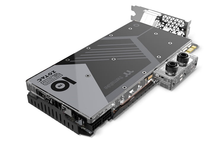 این شرکت که ید طولانی در زمینه تولید کارت گرافیک های سفارشی دارد، جدید ترین کارت گرافیک خود موسوم به ZOTAC GeForce GTX 1080 Arctic Storm Special Edition را رونمایی کرد. این کارت گرافیک فاقد خنک کننده های بادی (Air Cooler) و کولرهای عظیم الچثه است. یک بلاک بسیار باریک و البته خوش ساخت تمامی PCB را احاطه کرده و دو عدد ناقل ارتباطی استریو در استاندارد G1-4 در ساختار آن به کار رفته است.