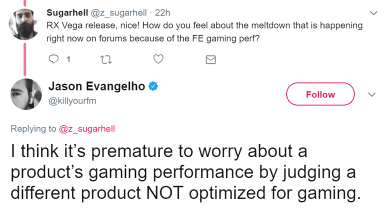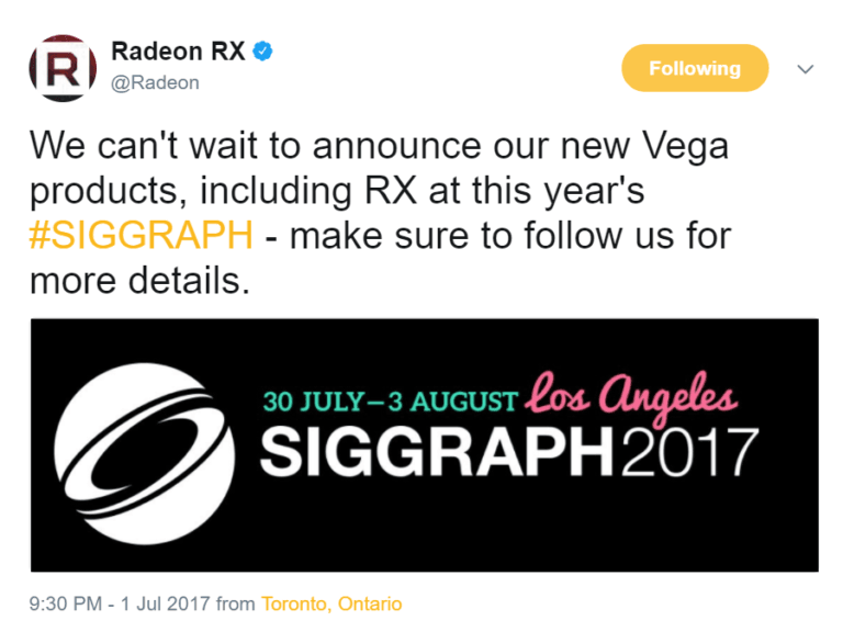 هم اینک برخی توئیت های کارمندان AMD در بخش Radeon RX حاکی از آن است که این محصولات دست کم در جریان کنفرانس SIGGRAPH 2017 معرفی خواهند شد. این توئیت ها در بخش هایی به نگرانی های مدیران MSI در زمینه حرارت و توان مصرفی نیز اشاره کرده و وعده داده اند که این مشکل تا این حد جدی نخواهد بود و به وسیله کنترل نمودار فرکانسی از بین می رود. کنفرانس SIGGRAPH 2017 در حدود 29 روز دیگر و از تاریخ 30 جولای تا 3 آگوست برپا خواهد بود. بسیاری از ادیتورهای معتبر خصوصا ادیتورهای آلمانی، به انتظار نزدیک به 2 سال اشاره کرده و ظاهرا چندان از این وضعیت راضی نیستند. عدم عرضه به موقع سخت افزارها از سوی AMD مسئله ای است که دست کم در 2 سال گذشته حواشی بسیاری را برای آن پدید آورده است.