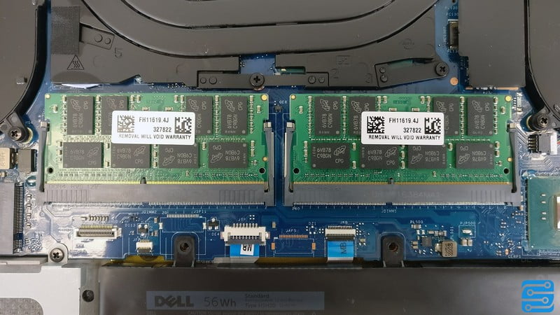 در بخش حافظه های رم، دل از دو اسلات حافظه رم DDR4 بهره گرفته است؛ 16 گیگابایت حافظه DDR4 در فرکانس 2400 مگاهرتز در دو اسلات 8 گیگابایتی جا خوش کرده اند. شیوه نصب اسلات ها نیز به دلیل کاهش ضخامت نوت بوک است.