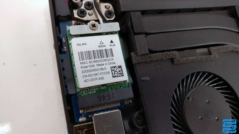 یک کارت Wi-Fi ترکیبی که می تواند علاوه بر وای فای بلوتوث را نیز هندل نماید، در کنار یکی از فن ها نصب شده است. تراشه های Killer اکثرا در لپ تاپ های گیمینگ و یا سطح بالا استفاده می شود، اما دل در این محصول نیز از تراشه Killer 1535 استفاده کرده است.
