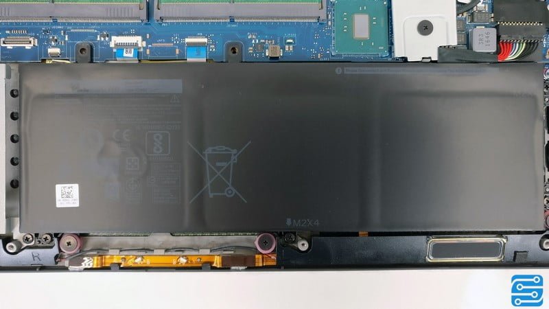 دل از دو باتری در پیکربندی های سخت افزاری متفاوت استفاده کرده است؛ یک نمونه باتری با توان 56 وات در ساعت و نمونه دیگر با توان 97 وات در ساعت. این باتری در نبود هارد دیسک می تواند مناسب باشد. با این وجود در برخی از پیکربندی ها شاهد استفاده از نمایشگرهای 4K/UHD هستیم که به طبع مصرف جریان را افزایش خواهد داد.