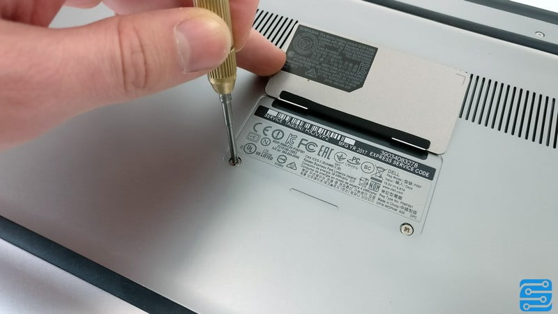 نوت بوک Dell XPS 15 (9560) یک الترابوک است که قطعات توانمندی را حمل می کند؛ در نتیجه فضای کافی برای مانور پیچ های بلند وجود نداشته و باید در باز کردن کابینت آن بسیار دقت کنید. تعداد پیچ های قرار گرفته بر روی درب زیرین نسبتا کم بوده و بیشتر از پرس ها برای نگهداری آنها استفاده شده است. یک درب کوچک در پایین نوت بوک قرار دارد که در آن دو عدد پیچ دیگر به همراه مشخصات فنی نوت بوک قرار دارد. همانطور که در تصویر نیز پیداست، تولید Dell XPS 15 (9560) در سال 2017 انجام شده است.