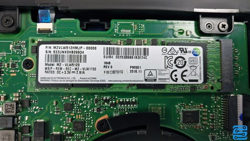 در بخش ذخیره سازی، این محصول فاقد درایو های 2.5 اینچی بوده و تنها به یک اسلات M.2 تکیه می کند. کانفیگ مورد نظر ما دارای یک حافظه Samsung PM961 PCIe NVMe با ظرفیت 512 گیگابایت است.