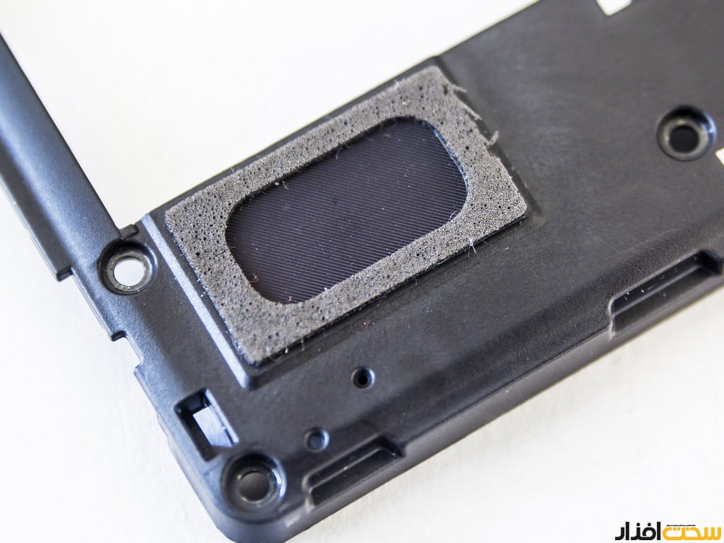 این بلندگوی تک کاناله در گوشه سمت چپ در پشت گوشی قرار گرفته است. نوار بلند فلزی پشت گوشی ممکن است این مسئله را به ذهن بیاورد که با بلندگویی بزرگ روبرو هستیم، اما کالبدشکافی حقیقت مسئله را برایمان نمایان کرده است.