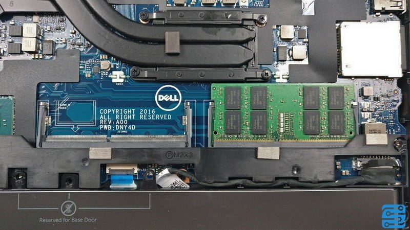 مادربرد لپ تاپ Dell Precision 15 3520 دارای دو جایگاه رم است که در این کانفیگ، یکی از آنها با یک اسلات SK Hynix پر شده است. این مادربرد می تواند از ماژول های DDR4 در فرکانس 2400 مگاهرتز و حداثکر 32 گیگابایت شامل دو ماژول 16 گیگابایتی پشتیبانی نماید. در هر صورت بعید است نیازمند بیش از 16 گیگابایت رم در یک لپ تاپ ایستگاه کاری شوید که از حافظه های ذخیره سازی SSD NVME بهره می برد.