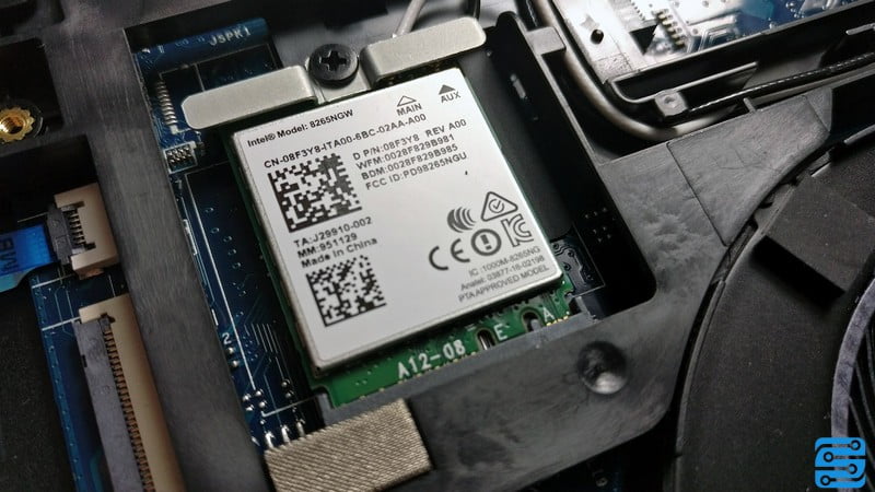 ماژول Wi-Fi دقیقا در کنار خنک کننده قرار گرفته است؛ دل از ماژول Intel 8265NGW استفاده کرده است. این ماژول از نوع ترکیبی بوده و بلوتوث را نیز اجرا می سازد.