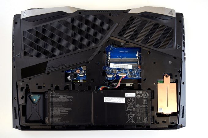لپ تاپ Acer Predator Helios 500 به سادگی امکان ارتقاء را برای کاربران فراهم ساخته و در زیرین آن (در بخش سخت افزارهای قابل ارتقاء) تنها با 2 پیج از جای خود خارج می گردد.