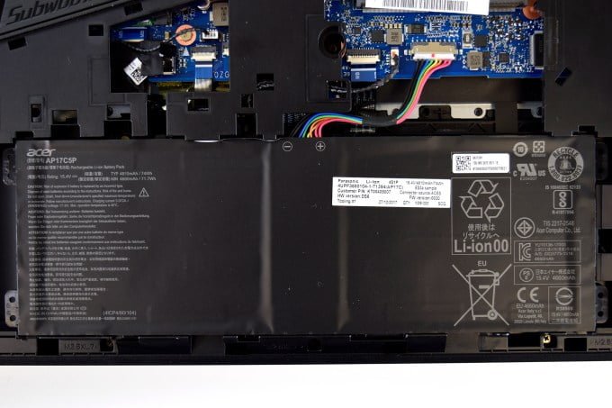 باتری داخلی دستگاه بین دو بخش ذخیره سازی شامل HDD و SSD قرار گرفته است. این باتری دارای توان 74 وات در ساعت است که البته با توجه به سخت افزارهای آن، برای پردازش های سنگین بدون برق شهر نمی توانید چندان روی آن حساب باز کنید.