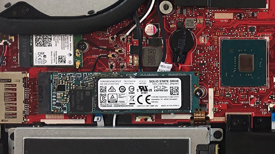 در بخش حافظه ذخیره سازی، شاهد استفاده از یک ماژول SSD M.2هستیم؛ این سالید درایو مدل Toshiba THNSN5256GPU7 و از انواع PCIe NVMe SSD است که دارای سرعت بالایی است.