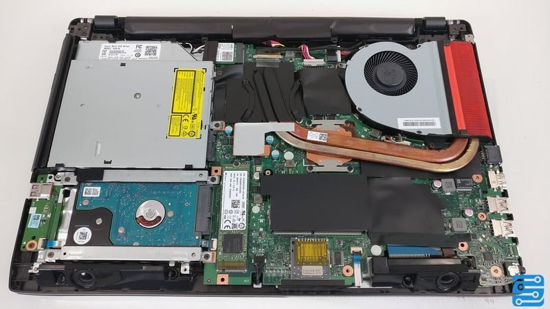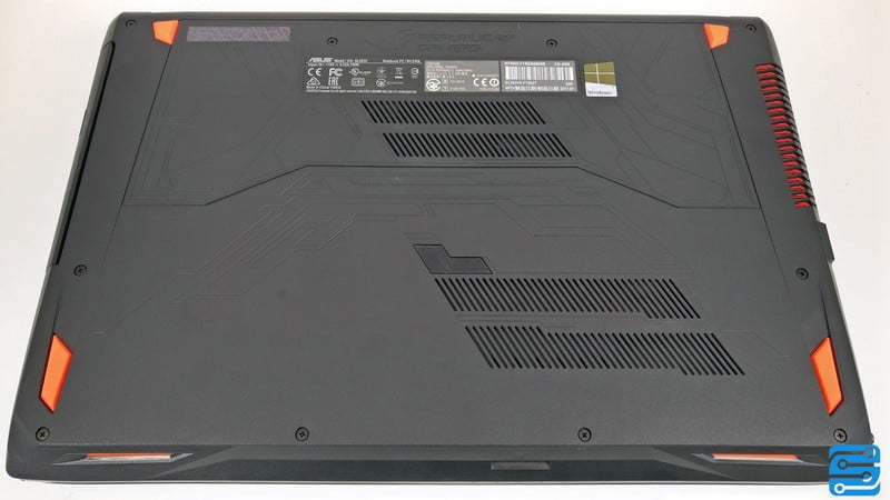 هر چند که یک نوت بوک گیمینگ نه چندان گران قیمت را در دست داریم، اما ایسوس به فکر طراحی و افزودن ویژگی های مخصوص بازی است. درب اصلی که در زیر نوت بوک قرار گرفته است، دارای شیارهای ورودی هوا است. باز کردن آن کار چندانی سختی نبوده و پس از باز کردن درب، تمامی قطعات سخت افزاری مهم در دسترس است.