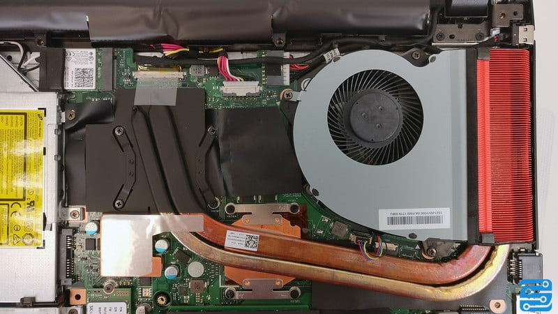 اما سیستم خنک کننده می توانست بهتر باشد؛ کولر ASUS ROG Strix GL553VE ساده مانند نوت بوک های دیگر سری N است. این خنک کننده تنها از یک فن و دو هیت پایپ مسی تشکیل شده است که روی GPU و CPU عبور کرده اند. این فن اگزوز را به کنار نوت بوک کشانده است. شاید بهتر باشد در هنگام بازی، از یک کول پد مناسب در کنار آن استفاده نمائید.