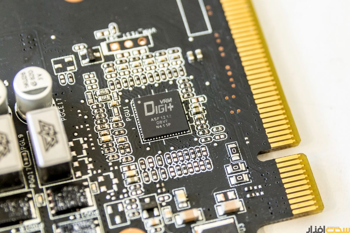 کنترلر دیجیتال Digi+ VRM وظیفه کنترل توان را بر عهده دارد. این قطعه پایین مدار رگولاتور قرار گرفته است.