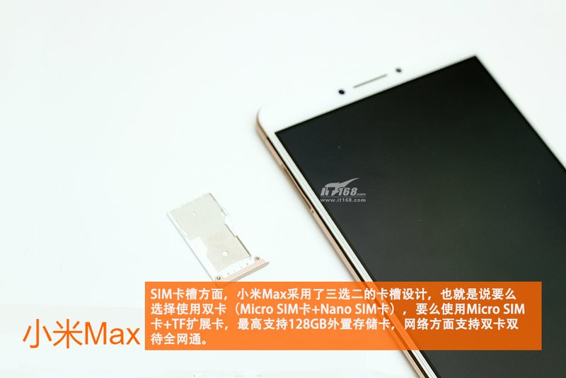 شیائومی Mi Max از هر دو سیم کارت میکرو و نانو پشتیبانی میکند و توانایی ارتقای حافظه تا 128 گیگابایت را داراست.