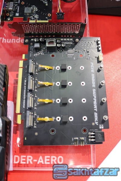 محصول جدید و تازه وارد MSI، یک کارت توسعه SSD M.2 است. این محصول میزبان 4 درایو سالید SSD M.2 است که بر روی اسلات PCI-E نصب می شوند. خنک کننده ای برای آن در نظر گرفته شده است که به همراه یک فن، تهویه قطعات را عهده دار است.