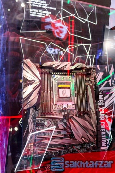 مادربرد حرفه ای و چشم نواز MSI MEG X399 Creation نیز یکی دیگر از نوآوری های کامپیوتکس 2018 بود. MSI MEG X399 Creation پرچمدار جدید MSI مجهز به چیپست AMD X399 است. این مادربرد در ابعاد ATX، چیزی نزدیک به فرم استاندارد E-ATX را به خود گرفته است که در حد و اندازه یک پرچمدار واقعی است! نخستین مسئله ای که در نگاه اول خودنمایی می کند، طراحی جدید این مادربرد در کنار هیت سینک یکسره با PCH است که مشخصا بدون استناد به طراحی های پیشین، ظاهری جدید و مدرن دارد. همچنین مدار VRM نیز با یک هیت سینک بزرگ تا پنل I/O پوشش داده شده است.