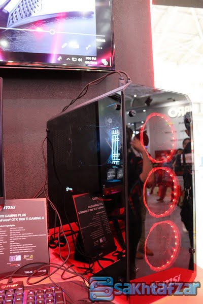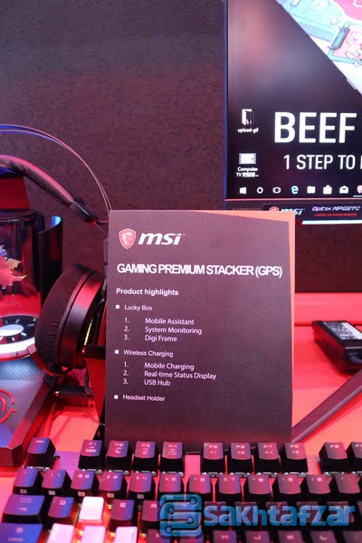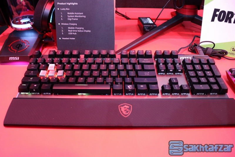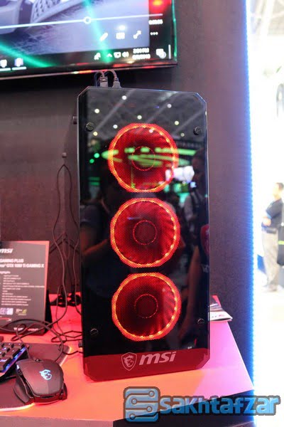کیس گیمینگ MSI MAG Pylon از جمله مورادی است که در این غرفه به چشم می خورد. این کیس در کنار یک اسمبل و مودینگ حرفه ای رویت شد. کیس MSI MAG Pylon از سری مدل های گیمینگ این شرکت، محصولی در فرم ATX نوع Mid-tower است که پنل شیشه ای 4 میلی متری در جلو و کنار آن نصب شده است. این کیس 45 لیتری 8.4 کیلوگرم وزن داشته و می تواند از کارت گرافیک هایی به طول 37 سانتی متر پشتیبانی نماید. یکی از ویژگی های کیس MSI MAG Pylon به واقع سازگاری آن با فناوری MSI Mystic Light RGB است که از 3 عدد فن جلویی برای نمایش این سازگاری بهره می برد. این فن ها به دیودهای LED RGB مجهز هستند. در بخش ذخیره سازی، امکان استفاده از دو درایو 3.5 اینچی یا 4 درایو 2.5 اینچی را خواهید داشت.