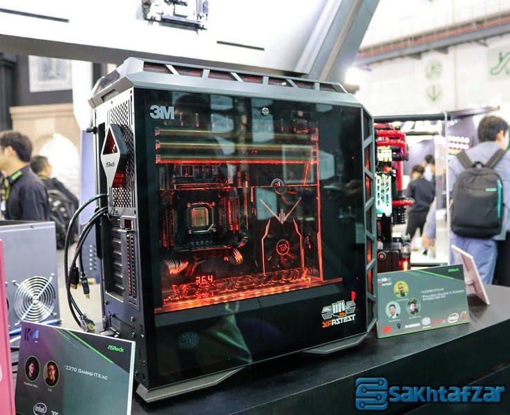 سپس به سراغ مادربردهای جدید آن خواهیم رفت؛ این شرکت به تازگی مادربرد ASRock Fatal1ty X470 Gaming-ITX/ac را معرفی کرده و در غرفه خود به نمایش در آورده است. این مادربرد در فرم استاندارد Mini ITX تولید گشته و در بخش هایی از فناوری LED RGB نیز پشتیبانی به عمل می آورد. چیپست X470 می تواند میزبان گونه های 12 نانومتری AMD Ryzen 2000 باشد و جالب است بدانید که ASRock Fatal1ty X470 Gaming-ITX/ac در دو اسلات حافظه خود، از رم هایی با فرکانس 3466 مگاهرتز پشتیبانی به عمل می آورد. مهمترین اسلات توسعه آن را یک شکاف PCIe 3.0 x16 تشکیل داده است که برای نصب کارت گرافیک های نسبتا سنگین نیز مقاوم سازی شده است.