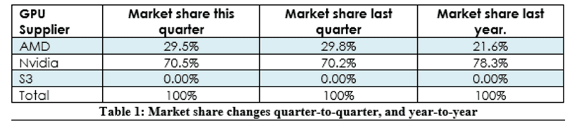 دو کمپانی NVIDIA و AMD تنها سازندگان تراشه های گرافیکی در سطح کامپیوتر هستند؛ این دو شرکت آمریکایی سالها است که بر سر سهم بیشتر از بازار GPU ها در رقابت هستند. در همین راستا آخرین اطلاعات از 3 ماهه پایانی سال 2016 یا Q4 2014 منتشر شده است که وضعیت سهم بازار هر دو کمپانی را به تصویر کشیده است. طی این گزارش، کمپانی انویدیا به لطف عرضه کارت گرافیک های Pascal همچنان در سطر جدول قرار دارد. در ماه های اخیر، کارت گرافیک های NVIDIA با در دست داشتن 70.5% از بازار تراشه های گرافیکی، رتبه نخست جهان را به خود اختصاص داده اند. AMD نیز 29.5% از این بازار را در دست دارد. کارت گرافیک های AMD Polaris در دسته بندی Mid-Range و Low-Profile قرار می گیرند. در نتیجه این محصولات فاقد پرچمدار هستند.