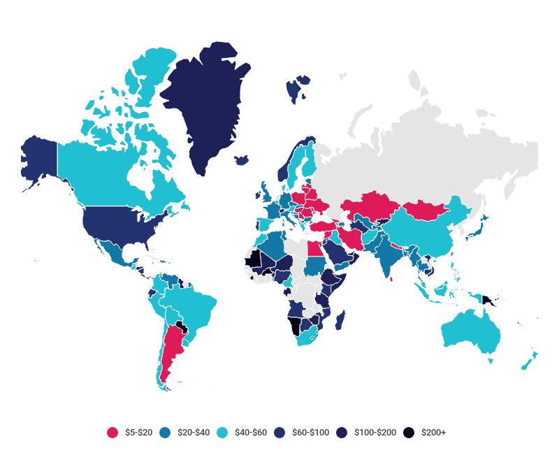اوایل هفته مطلبی با عنوان “کشورهایی با کندترین و سریعترین اینترنت جهان” را با شما به اشتراک گذاشتیم. در مطلب امروز قصد داریم با هم نگاهی داشته باشیم به قیمت اینترنت در سراسر جهان و ببینیم که کدام کشورها گرانترین و ارزانترین قیمت اینترنت را به کاربران خود ارائه میکند. این اطلاعات از 195 کشور جهان و در بازه 15 آگوست تا 20 سپتامبر سال 2018 جمعآوری شده است.