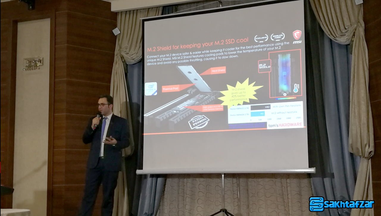 سپس بخش دوم مباحث فنی با رویکرد تخصصی روی فناوری M.2 Shield و تست عملکرد و تاثیرگزاری آن توسط صابر آذین، کارشناس فنی شرکت پردیس صنعت سیاره سبز انجام شد. در این بخش نیز سوالاتی تخصصی مطرح و جوایزی به برندگان اهدا شد.
